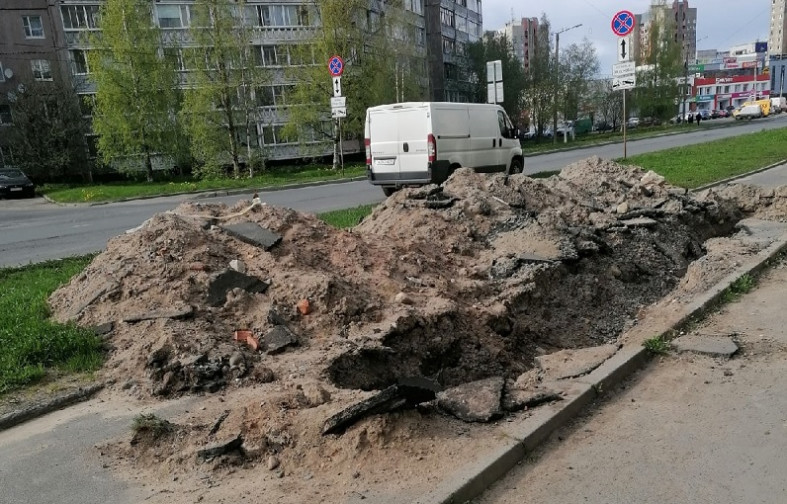 Как рассказал автор публикации, рабочие раскопали тротуар в конце прошлой осени. Почти сразу его замело снегом. Но прошло полгода, снег давно растаял, а яму никто закапывать не собирается. При этом она никак не огорожена.