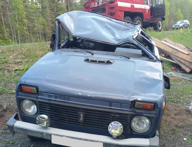 По данным спасателей, водитель автомобиля «Нива» не справился с управлением, в результате чего машина съехала в кювет и перевернулась.