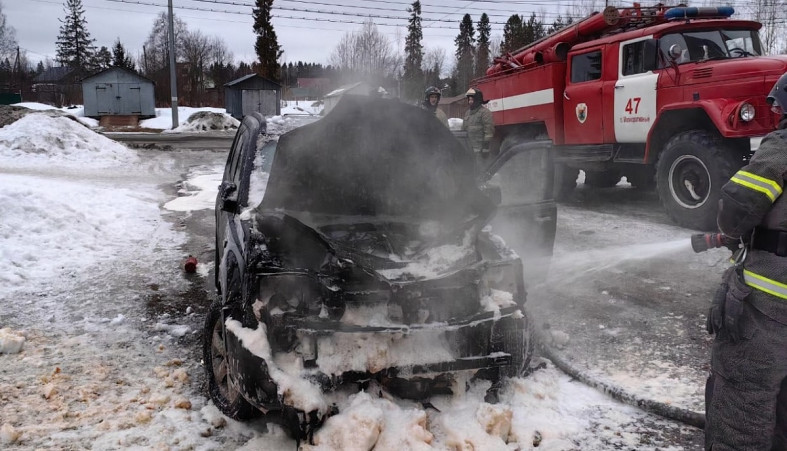 По данным источника, сигнал о возгорании поступил на пульт дежурного в 6:47. На место выехали специалисты из Петрозаводска и поселка Мелиоративный. Выяснилось, что загорелся легковой автомобиль «Ниссан».