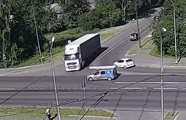 Днем 26 июня в Петрозаводске на пересечении улиц Правды и Промышленной произошло ДТП с участием грузовика. Инцидент попал в объектив камеры наблюдения компании CityLink.