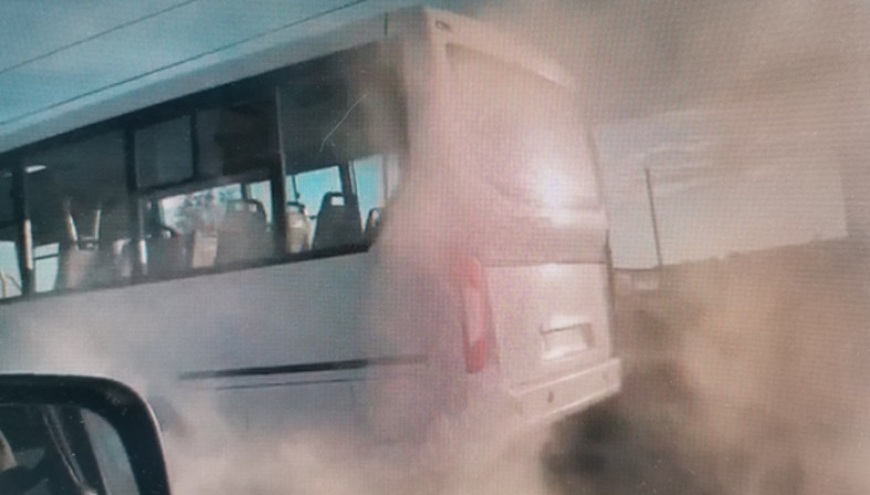 Пассажирский автобус в Петрозаводске передвигался по маршруту в густом дыму. Очевидец снял это на камеру смартфона и разместил видео в группе «ДТП Петрозаводска и Карелии».