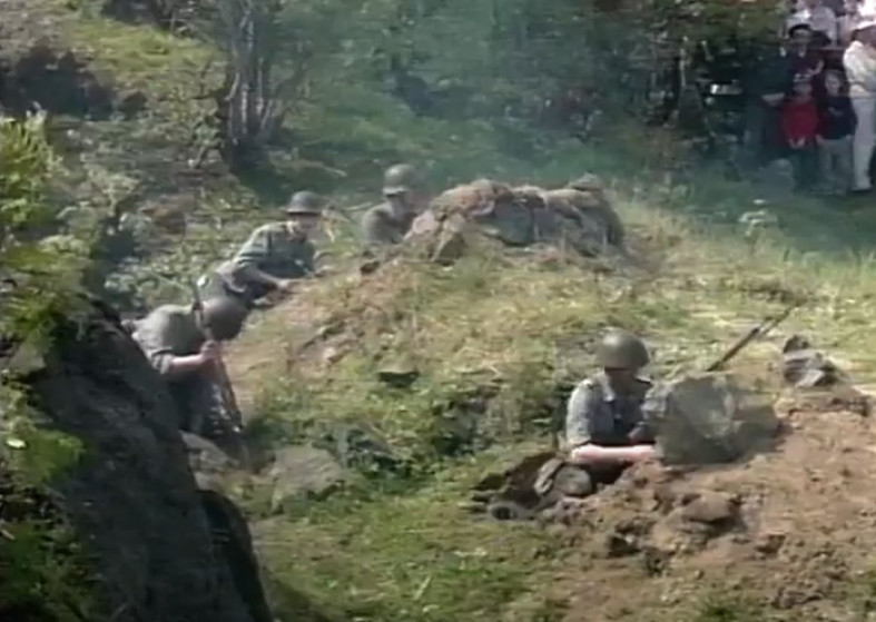 Члены военно-исторического клуба «Стягъ» и питерского клуба «4-й егерский батальон» разыграли настоящий реконструкторский бой. Именно так все и было, утверждали ветераны войны. Клубы дыма окутывали и зрителей, и участников сражения. Гремели выстрелы, летели гранаты.