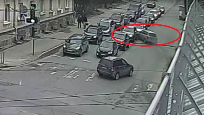 Водитель легковушки внезапно протаранил колонну автомобилей