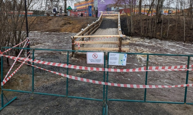 Накануне был закрыт пешеходный мост в районе набережной, пешеходам предложили переходить Лососинку по Кипучке. // фото пресс-службы администрации города