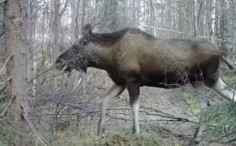 Ранее фотоловушка запечатлела ночную прогулку гиганта карельского леса. (фото скриншот)