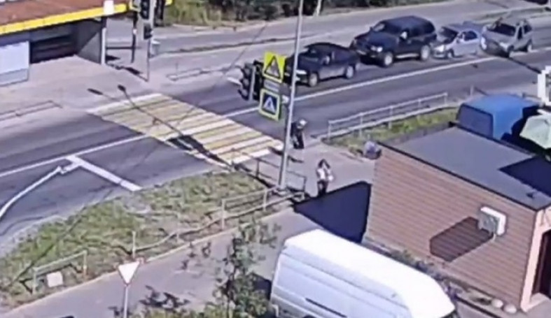 Судя по этим кадрам, инцидент случился в 13:18 на перекрестке проспекта Ленина и улицы Андропова. Машина двигалась по проезжей части, водитель собирался повернуть.