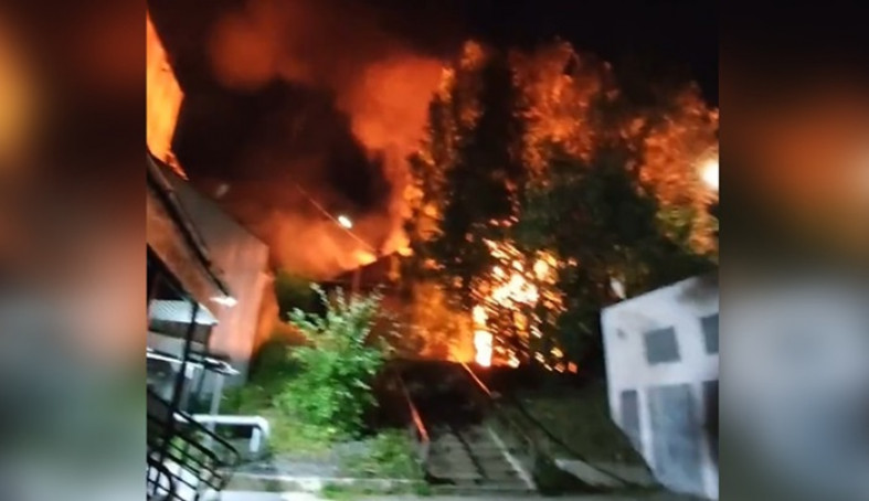 Видео опубликовали в группе «Подслушано в ПТЗ». В кадре – горящее двухэтажное строение. Клубы дыма и языки пламени поднимаются высоко.