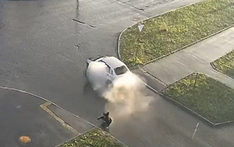 Автомобиль перестал дымиться. Вокруг него столпились люди, а через какое-то время машина доехала до ближайшего свободного места на парковке. // фото стоп-кадр