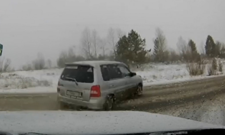 Инцидент попал в объектив регистратора ехавшей мимо машины. На кадрах видно, что легковушку занесло и выбросило на встречку. // Фото: скриншот видео «МВД Медиа»