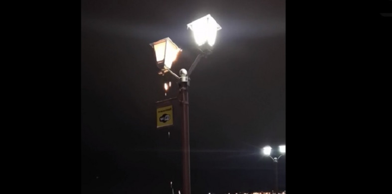 Один из фонарей на набережной столицы Карелии начал испускать искры, а потом и вовсе загорелся. Видео с фонарем-факелом прислали ИА «Республика» очевидцы.