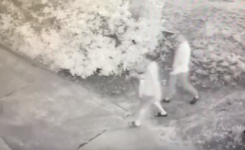В кадре – двое мужчин в белом. У того, что в шортах, в руках пакет. Лиц не различить. Судя по дате, запись была сделана в начале июня около 23:45.