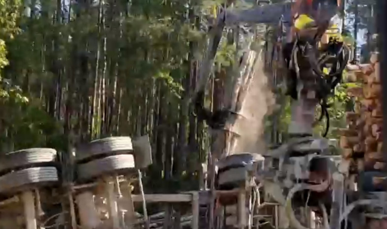 В Сегежском районе груженый лесовоз опрокинулся в кювет.