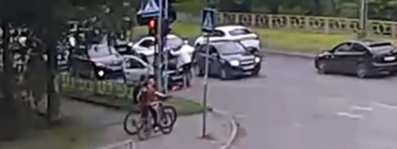 Дорожное происшествие произошло 22 июня в 10:42 на Лесном проспекте, 31. Момент ДТП запечатлела камера уличного наблюдения CityLink.