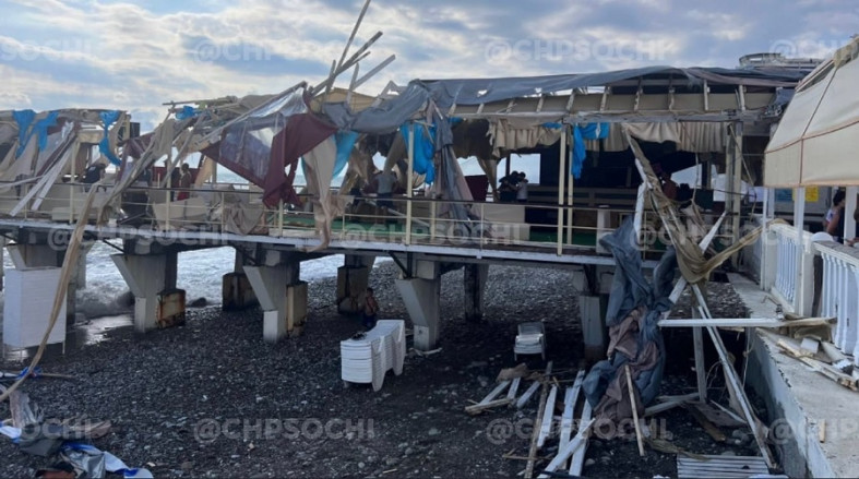 Налетевший с Черного моря смерч в Сочи разнес летнее кафе. По словам очевидцев, вихрь сначала гулял в море в течение двух часов, воронка увеличивалась в размерах, когда он окреп, то вышел на сушу и ударил по «Нептуну» в Лазаревском районе, а потом распался. Об инциденте сообщает издание Sochi1.ru. По предварительным данным, люди не пострадали, чего не скажешь о пляжной инфраструктуре.