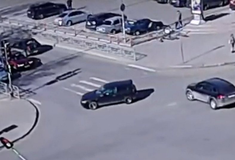 На кадрах видно, как внедорожник, выполнявший левый поворот, не уступил дорогу легковому автомобилю, который ехал прямо. Уходя от столкновения, водитель легковушки увел машину вправо, в результате чего она вылетела на тротуар.