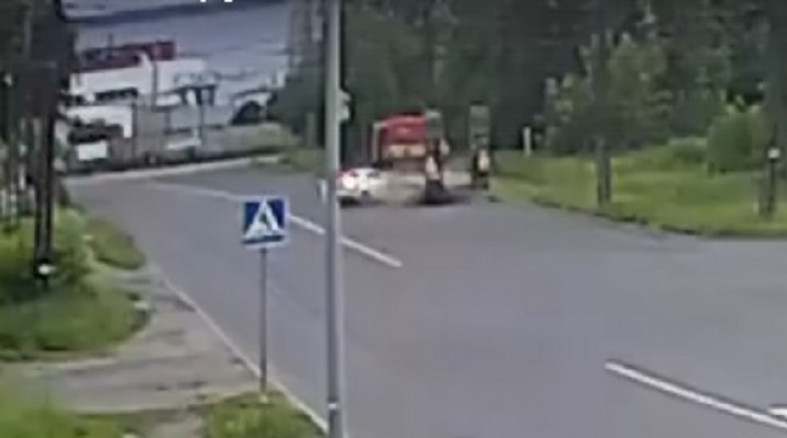 Днем 25 июня в Петрозаводске произошло жесткое ДТП на пересечении Первомайского проспекта и улицы Ленинградской. Инцидент попал в объектив камеры наблюдения компании Sampo.ru.