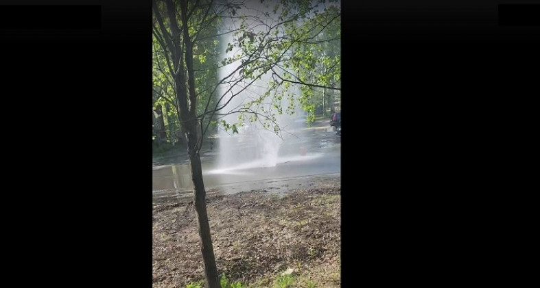 Видеокадры «фонтана» опубликовали в сообществе «Подслушано в Птз». По словам автор одного из видеороликов, на улице не так давно меняли трубы. // фото скриншот