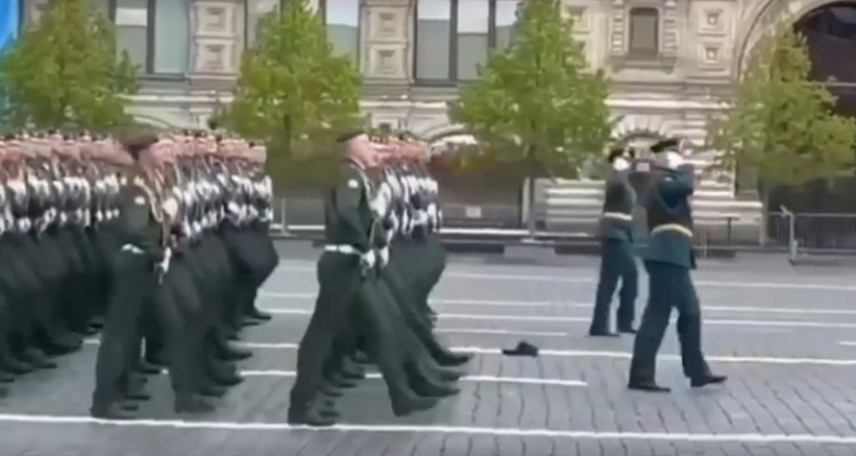 Один из участников парада Победы на Красной площади в Москве потерял ботинок во время шествия. Видео с обувью на брусчатке появилось в телеграм-канале «Пул №3». Хозяин обуви не вернулся и, видимо, продолжил шествие.