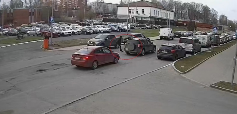 Автомобиль двигался по улице вверх в сторону Калинина. В этот момент мужчина вышел на дорогу, водитель успел затормозить, а затем продолжил путь, но снова остановился. Когда пешеход приблизился к автомобилю, водитель пнул и сбил того, а затем уехал.