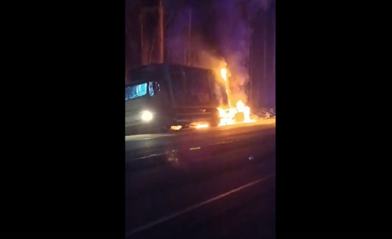 После столкновения легковушка загорелась. Очевидцы поделились в соцсети кадрами полыхающего автомобиля. Водитель успел покинуть транспортное средство. // фото скриншот