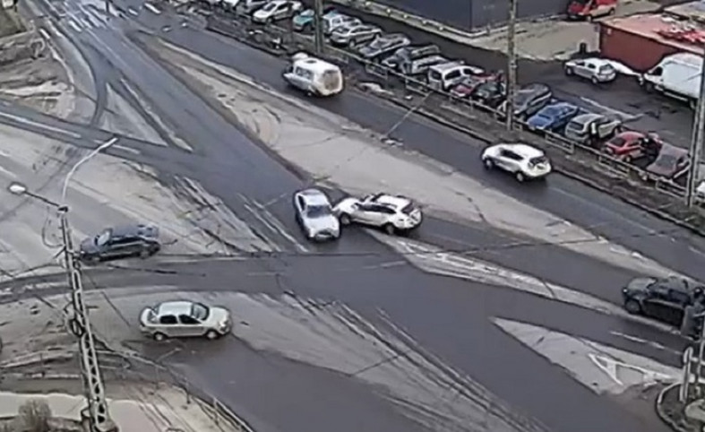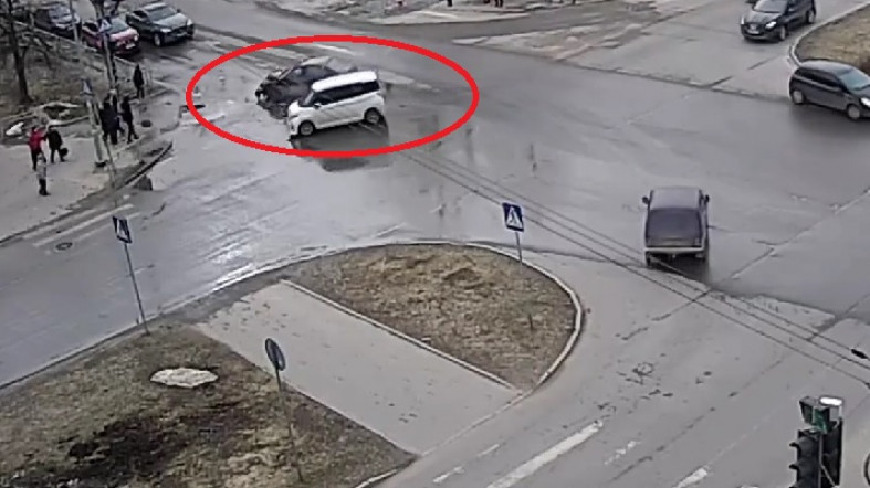 Вечером 10 апреля два автомобиля столкнулись в Петрозаводске. Авария попала в кадр камеры уличного видеонаблюдения, ролик опубликовали в группе «Подслушано у водителей Птз и Карелии».