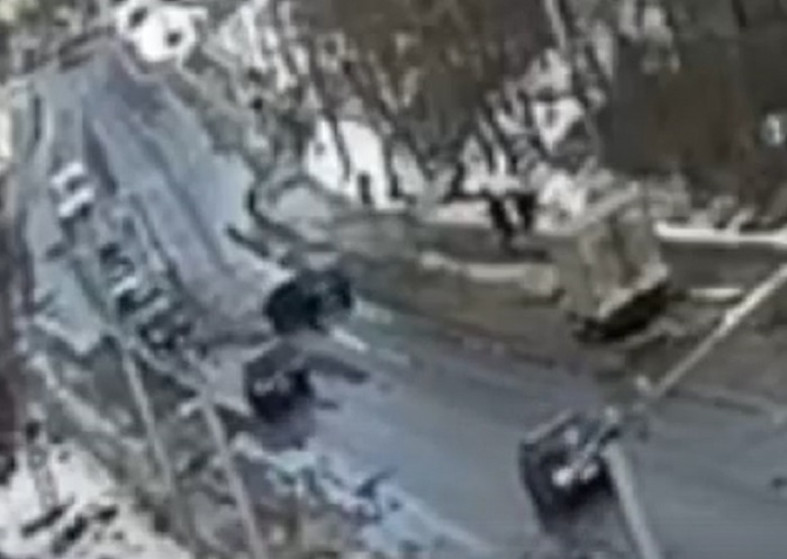 На кадрах видно, как легковой автомобиль пытался совершить левый поворот и заехать во двор. Вместо этого транспортное средство наскочило на сугроб и перевернулось. Падающий автомобиль задел пешеходов, которые в этот момент оказались рядом.
