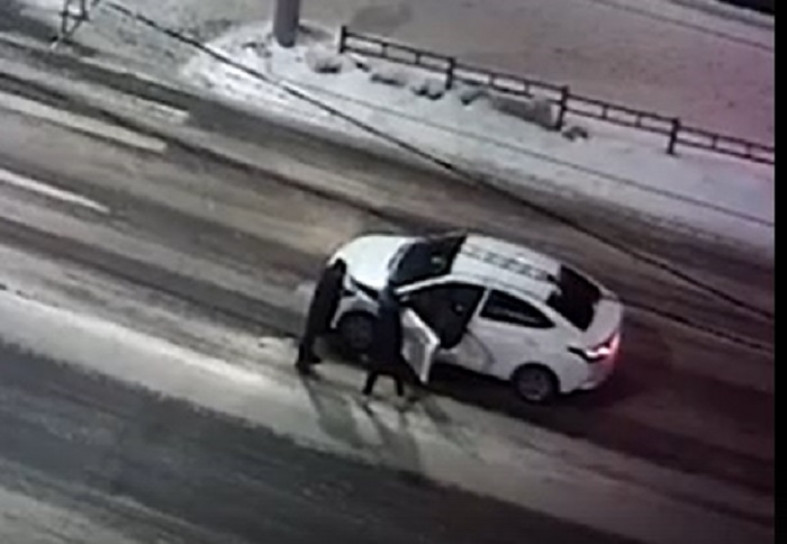 На кадрах видно, как некий мужчина подошел к автомобилю, стоявшему на светофоре, и заблокировал проезд. Водитель не церемонился - он вышел из салона и распылил в лицо пешеходу перцовый баллончик, после чего сопроводил его до тротуара, где тот упал в сугроб.