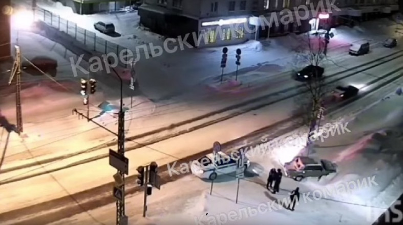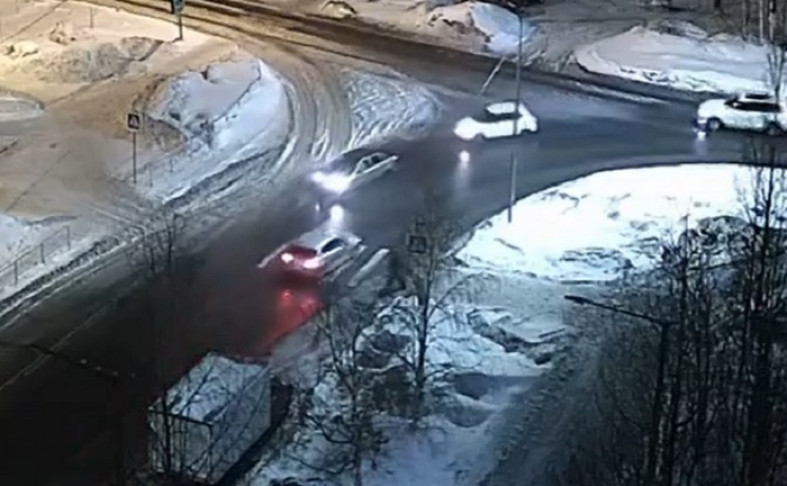 Вечером в среду в Петрозаводске произошла дорожная авария на пересечении улиц Попова и Сыктывкарской. Инцидент попал в объектив камеры наблюдения компании CityLink.