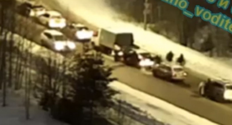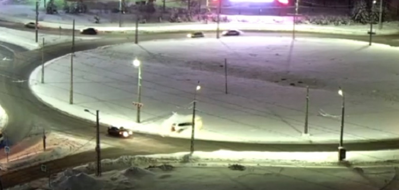 Двигавшийся по кольцу водитель успел заметить летевший в него автомобиль и притормозить. В итоге, тот кто летел с Чапаева, влетел в сугроб. Инцидент попал в объектив городской камеры, ролик разместили в сообществе «ДТП Петрозаводска и Карелии».
