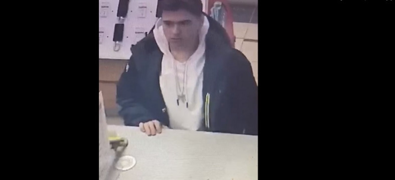 Молодой человек попал в кадр камеры наблюдения в торговой точке. На видео молодой человек в шапке с помпоном, куртке темного цвета, ростом примерно 160-170 см стоит перед прилавком и расплачивается по карте.