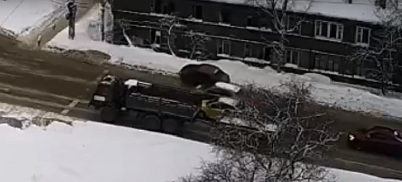 Момент столкновения попал в объективы городских камер, ролик опубликовал паблик «Подслушано у водителей Птз и Карелии». // фото скриншот