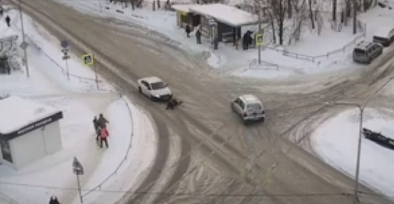 Дорожный инцидент случился на пересечении улицы Зеленая и Ругозерского переулка в 11:17. Женщина ударилась об асфальт и не поднималась, к ней подбежали очевидцы.