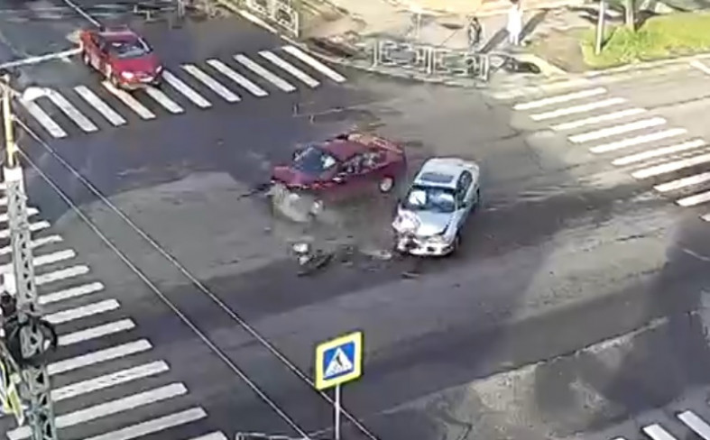 Городская камера наблюдения сняла момент ДТП в карельской столице