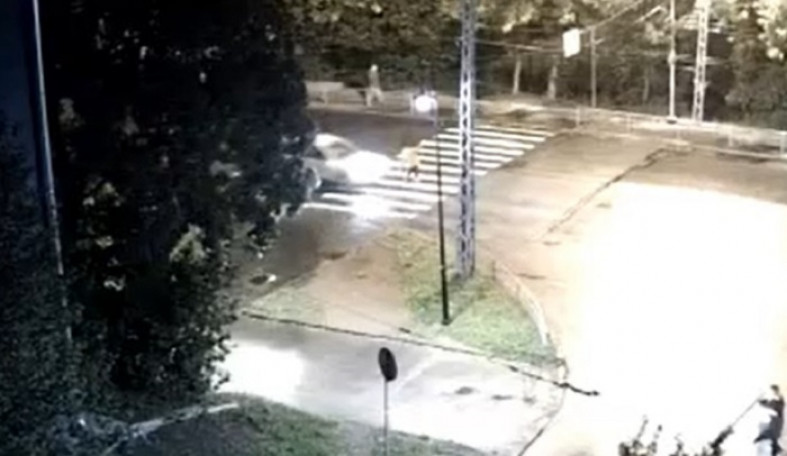 Все случилось в 21:10. На кадрах видно, как автомобиль сбивает человека, который шел по пешеходному переходу.