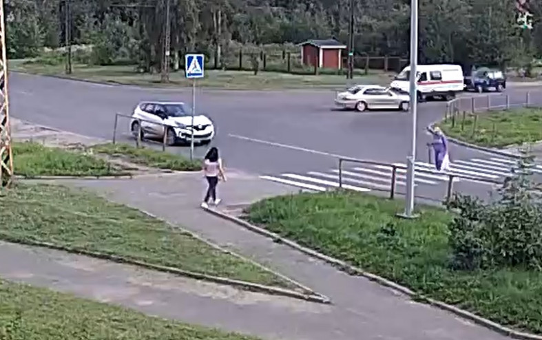 Днем 24 августа в Петрозаводске пешеход едва не погибла из-за лихача на дороге. Инцидент, произошедший в 12:53 на улице Ключевой, попал в объектив камеры наблюдения компании CityLink.