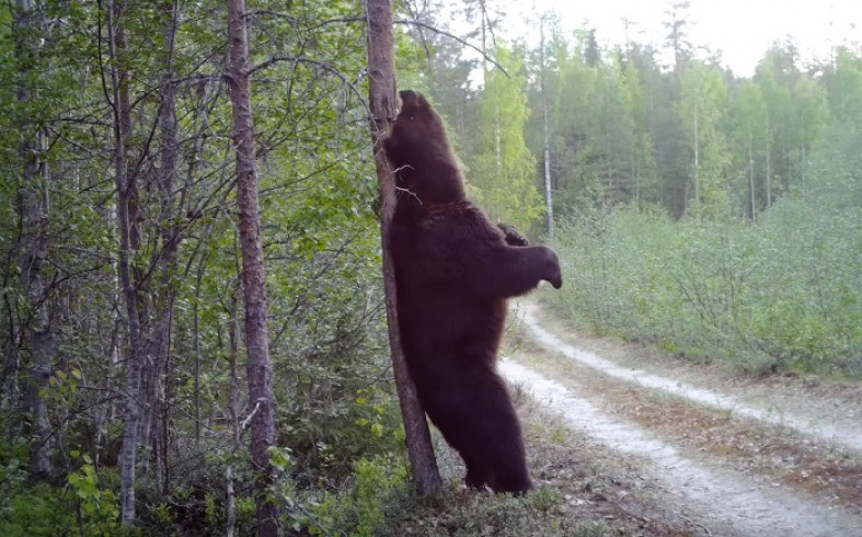 Оба поднимались на задние лапы, облокачивались на сосну и в танце чесали спину, оставляя послание. На видео даже слышно, как хозяева леса фыркают от удовольствия.