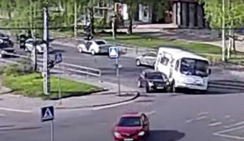 Авария на перекрестке рядом с бывшим кинотеатром «Калевала» в Петрозаводске произошла утром 22 мая. Инцидент попал в объектив городской камеры наблюдения «Сампо.ру». Все произошло, когда транспортные средства совершали поворот, сообщает Dtpptz.ru.