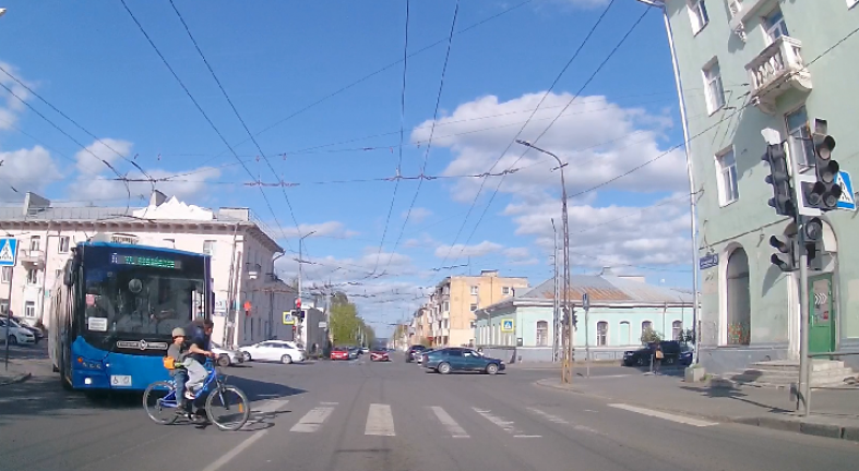 Мальчишки мчались на велосипеде по пешеходному переходу на улице «Правды» и чуть не попали под колеса троллейбуса. Дети ехали на зеленый сигнал светофора, в этот момент троллейбус поворачивал и не остановился.