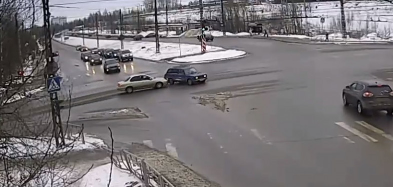 Авария на перекрестке Правды, Ключевского шоссе, Лыжной и Калинина в Петрозаводске попала в объектив городской камеры наблюдения. Запись опубликовал паблик «Подслушано у водителей Птз и Карелии».