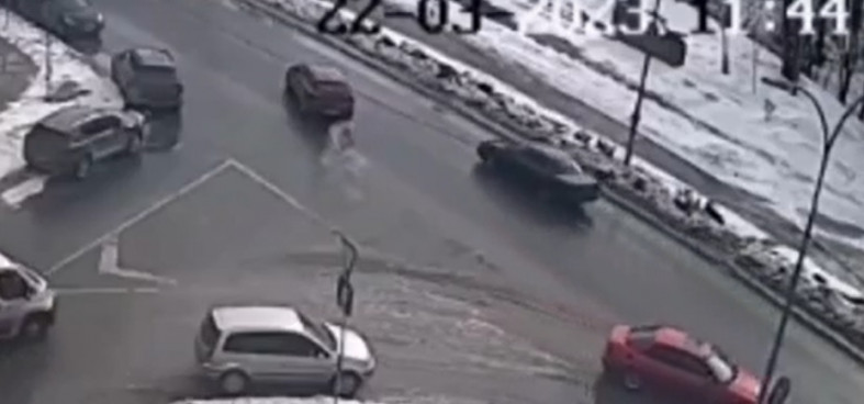 На кадрах видно, как легковой автомобиль при повороте налево выехал прямо под другую машину. Произошло столкновение.
