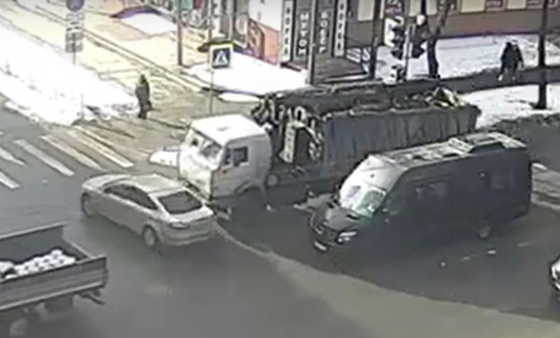 Днем 21 марта в Петрозаводске на пересечении улиц Красноармейской и Максима Горького произошло ДТП с участием грузового автомобиля. Инцидент попал в объектив камер наблюдения компаний Sampo.ru и CityLink.