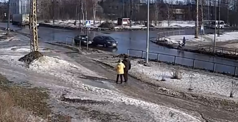 Призовое место в этом конкурсе могла бы занять одна из луж на Древлянке. Вот такая огромная лужа «протекала» по Лососинскому шоссе. Она была длиной около ста метров, а шириной – с проезжую часть. Глубину этого водоема никто измерить не решался. Но судя по тому, как (здесь на видео) аккуратно по кромочке пытались проехать ее водители, эта лужа была не из мелких. У легковых машин скрывало дно. Впрочем, на Древлянке таких луж было несколько. Жители микрорайона уже не ждали, что лужи уберут работники ЖЭУ или кто-то еще из специалистов. Скорей всего воды станет меньше только ближе к лету, когда она высохнет естественным образом, считали горожане.