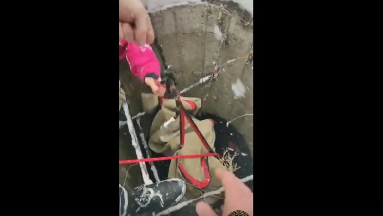 Карельские спасатели спустились в колодец, «упаковали» собаку и затем подняли наверх.