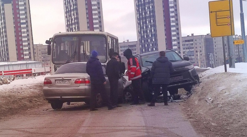 Вечером 26 февраля на пересечении Лососинского шоссе и Лесного проспекта случилась авария. Видео разместили в группе «ДТП Петрозаводска и Карелии» ВКонтакте.