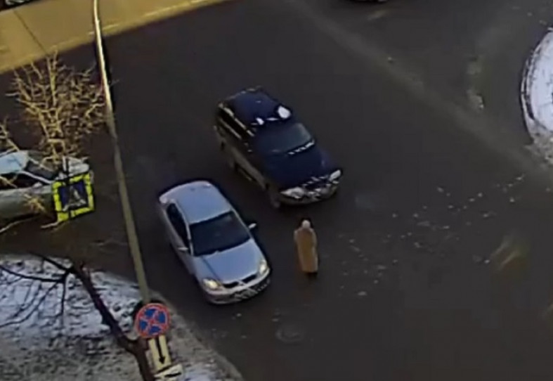 Сегодня днем в Петрозаводске пешеход чуть не попал под колеса автомобиля. Инцидент попал в объектив камеры наблюдения компании CityLink.