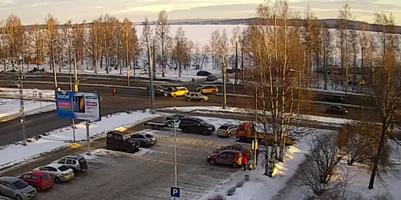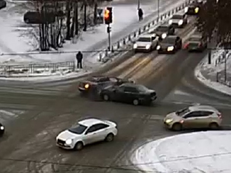 На кадрах видно, как автомобиль, выполнявший левый поворот в сторону озера, не уступил дорогу машине, ехавшей по проспекту. Произошло столкновение.
