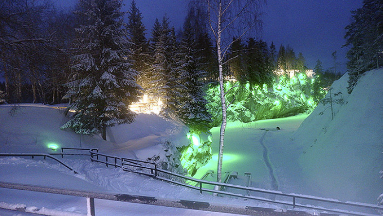 Зимняя Рускеала интересна своей театральностью – хорошо продуманной подсветкой. Это шоу под открытым небом. Именно ради этого визуального эффекта приезжают не летом, а зимой, не днем, а вечером. Под вечернее закрытие горного парка ты уже впадаешь в какую-то детскую эйфорию. И не важно – взрослый ты или ребенок. Сказочная Рускеала не хочет тебя отпускать. Выгоняют смотрители. (Видео)