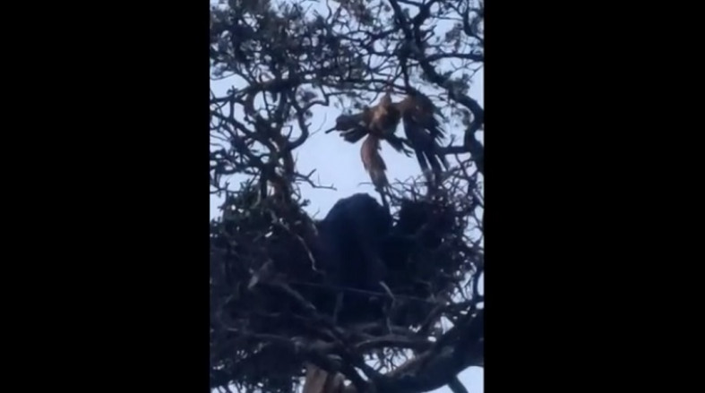 Орлана спустили на землю, напоили, накормили, он набралася сил, после чего его выпустили на волю. // скриншот видеозаписи