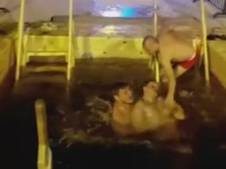 Судя по записи, молодой мужчина зашел в иордань, после чего упал на спину и начал погружаться в воду. Окружающим понадобилось несколько секунд, чтобы понять, что происходит экстренная ситуация. Парня начали доставать из воды другие участники купаний, затем им помогли сотрудники МЧС.