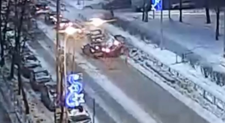 Момент вечерней аварии в центре Петрозаводска попал на видео